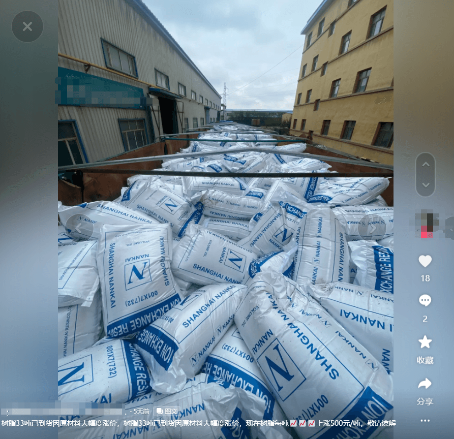 某生产商表示,因原材料大幅涨价,树脂上涨500元/吨。