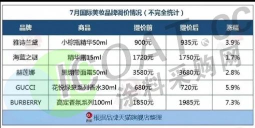 化妆品涨了,多个国际品牌报价上涨,一小瓶涨了几十块,将近10%。