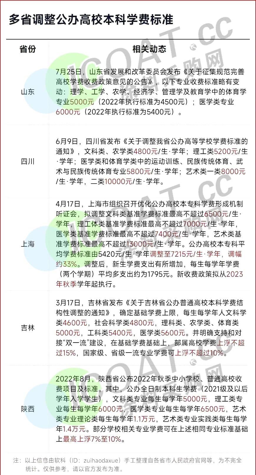 大学生的学费涨了,山东,四川、吉林等地陆续调整公办高校本专科学费标准,上涨幅度在10%-54%不等。调整后,全国多所公办高校学费跃升至每学年4000-8000元。