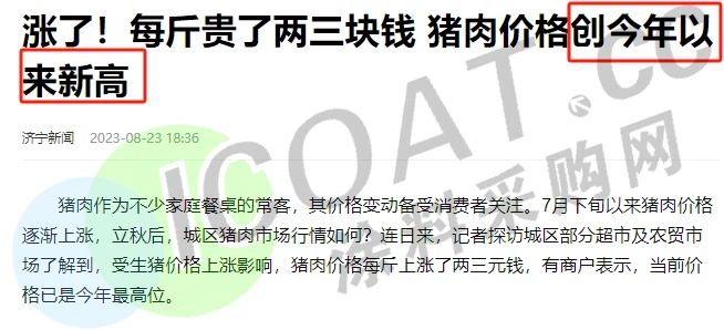 猪肉涨了,一斤涨了2、3块钱,创下今年以来的新高。