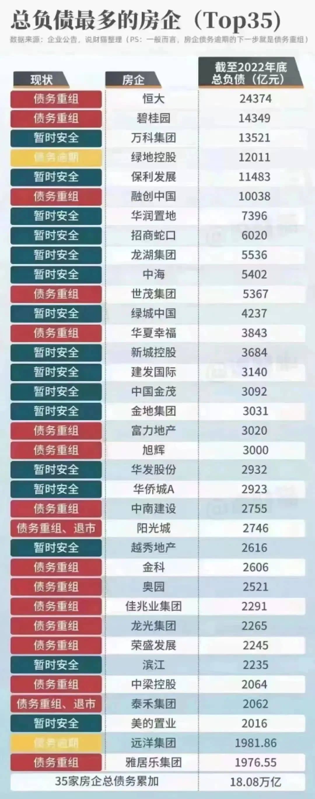 近几年房地产行业可谓是生存不易,TOP100房企中发生爆雷的近一半。TOP30房企里面,已爆雷的约20家。恒大、融创、绿地、世茂、富力、阳光城、正荣、蓝光、佳兆业、奥园、新力、花样年、当代置业等大家耳熟能详的企业也难逃厄运。负债规模上万亿、票据违约难兑付、美元债违约。员工理财未兑付……有些还被多次列为被执行人,股权被冻结,高管出行也受到了一定的限制。