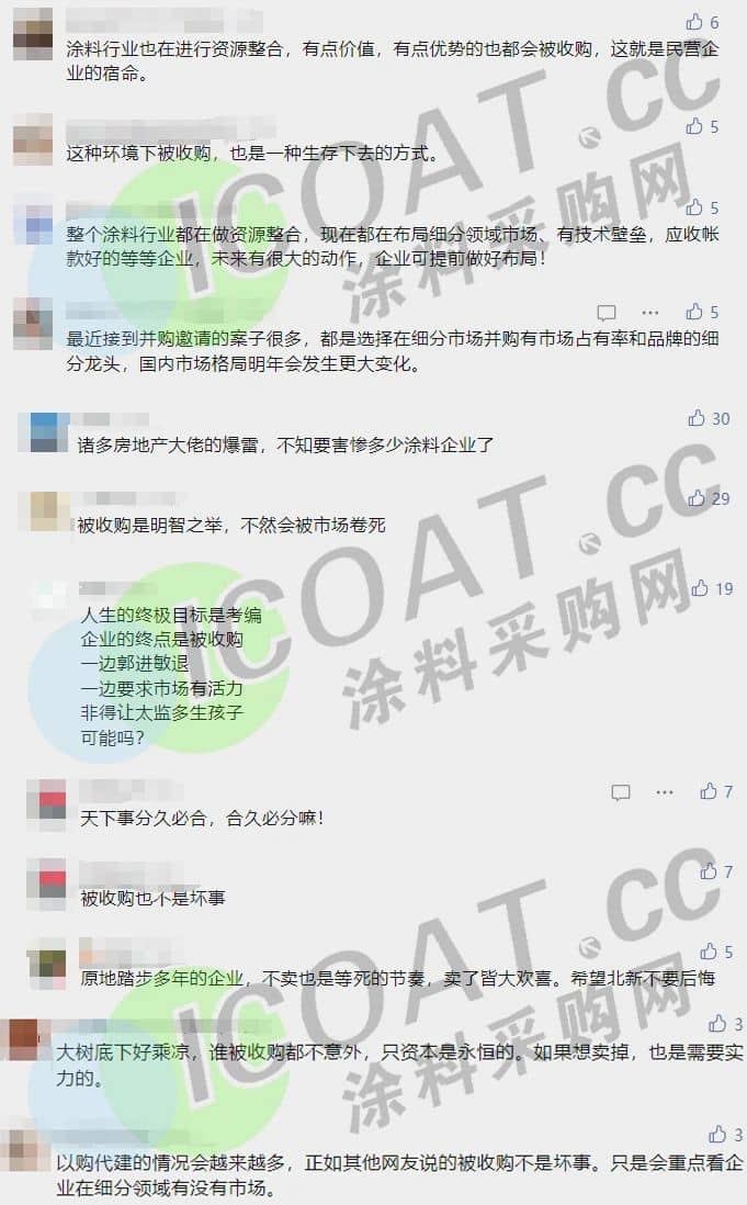 上游成本飙升、采购难,下游订单腰斩、账期长,行业中内卷内耗不断……种种压力让涂料企业左右为难,信心大减,难怪这几年不少涂料厂陆续注销停业,放假停产的也不计其数,更有企业顶着千万级别的债务难以脱身。这样看来,被收购恐怕也是求生存的方式之一。相较于“生在罗马”衣食无忧的国央企涂料厂而言,“身为牛马”的民营涂料厂或将面临更加严峻的生存环境。