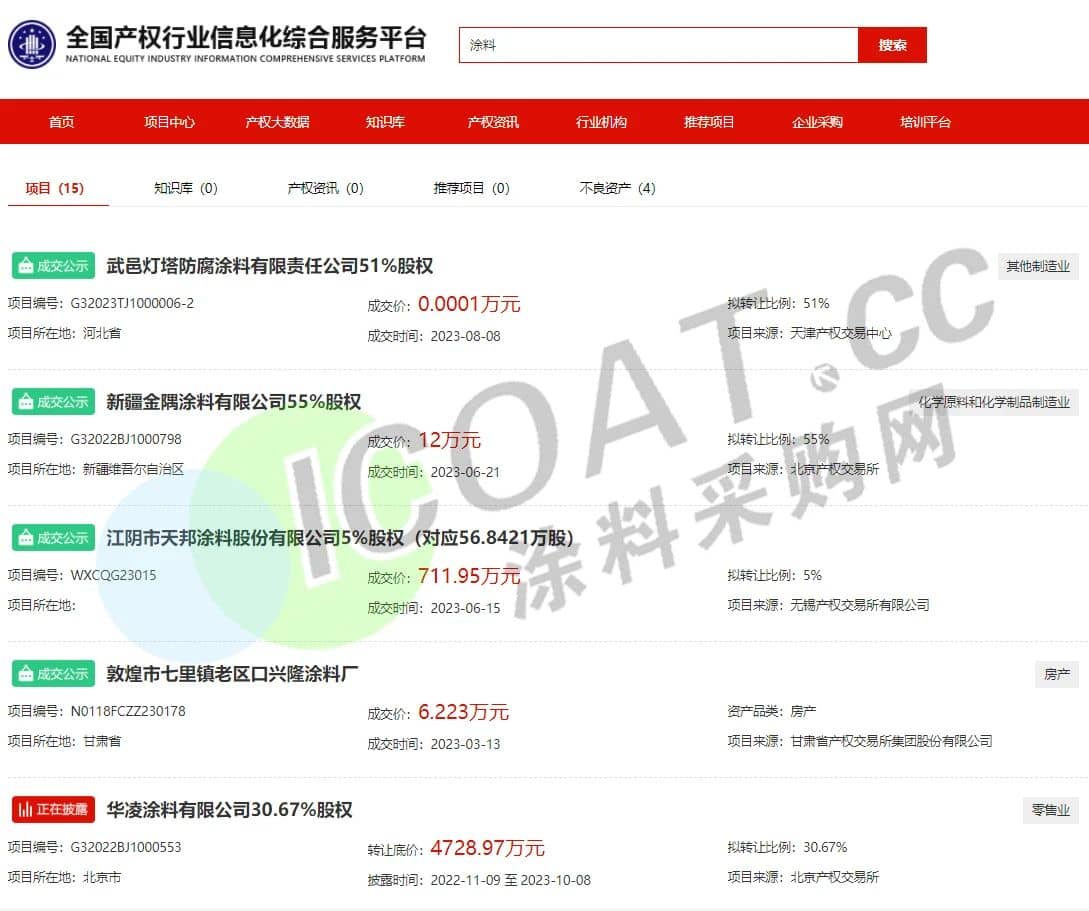 而在近几年,民族涂料企业卖身转让的情况并不在少数。华凌涂料有限公司30.67%股权挂牌转让,北京金隅涂料挂牌转让新疆金隅涂料55%股权,武邑灯塔防腐涂料有限责任公司51%股权挂牌转让,江阴市天邦涂料股份有限公司5%股权挂牌转让……