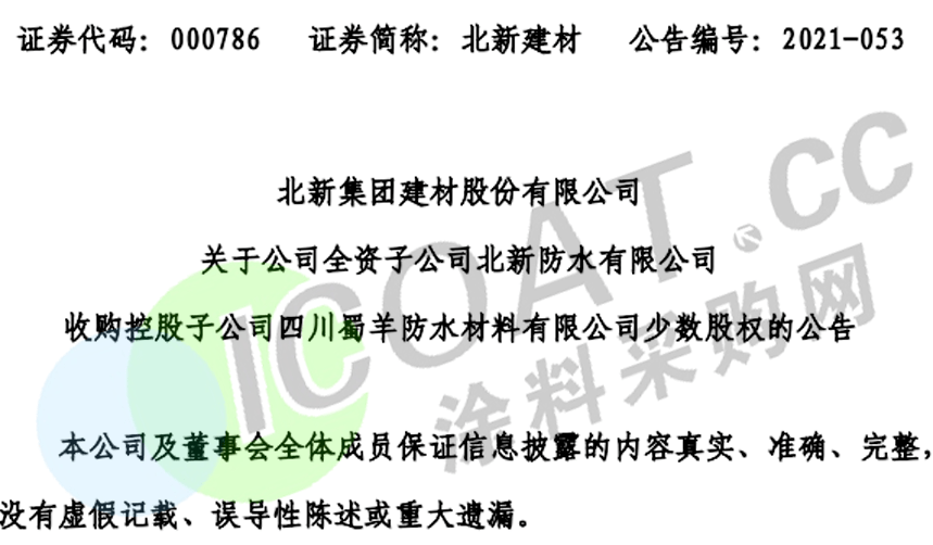 2021年9月25日,北新防水拟以23,085.00万元收购四川蜀羊的剩余30%股权。