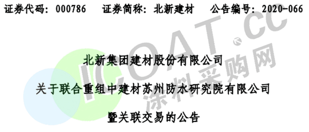 2020年12月31日,北新建材以6,921.32万元的价格受让中建材苏州防水研究院有限公司100%股权。