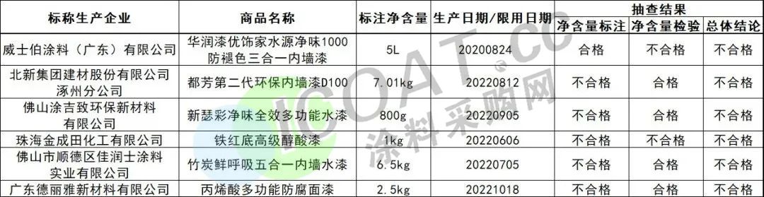 而在广东省市场监督管理局发布关于2022年定量包装商品净含量省级计量专项监督抽查结果的通告中,威士伯涂料(广东)有限公司生产的华润漆优饰家水源净味1000防褪色三合一内墙漆净含量检验不合格;北新集团建材股份有限公司涿州分公司生产的都芳第二代环保内墙漆D100净含量标注不合格。这也让不少消费者大跌眼镜,难道大品牌也靠不住了吗?
