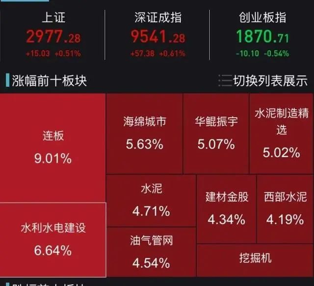 大基建板块全面爆发,水利建设、建筑材料、水泥、钢铁、装配式建筑、污水处理、民爆、工程咨询等板块纷纷起舞,板块内深水规院、巴安水务、冀东水泥、新兴铸管等多股涨停。