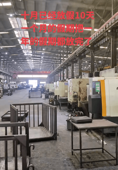 某设备厂员工表示,十月已经放假10天,一个月的假期把一年的假期都放完了。