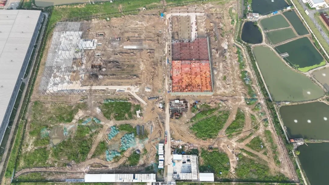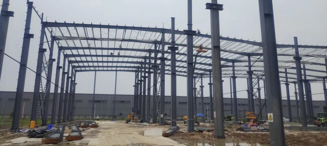 自去年12月动工,不到半年时间,项目初具雏形,不断跑出建设“加速度”。目前,C栋热压及镭射车间钢结构已开始吊装,D栋焊接车间支模架搭设进度完成超50%,2栋车间预计可于2024年7月份完成封顶,9月份实现投产;项目整体预计可在2025年6月投产交付。