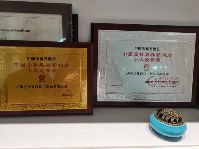 凭借雄厚的技术实力及高质量的管理方法,亮江钛白取得了行业内的优势和市场领先地位。也在涂料产业龙头媒体涂料采购网举办的活动中,多次荣获《中国涂料最具影响力十大经销商》奖项,体现了巨大的行业影响力。同时,亮江钛白为更好的服务广大用户,健全营销网络,响应国内外顾客的新需求,不断努力研究开发一流的产品。以大陆为中心,覆盖到各大国内省市,并畅销至中国台湾、中国香港、韩国、日本、意大利、东南亚、北美等国家和地区,并与多家世界500强企业建有长期稳定的合作关系。