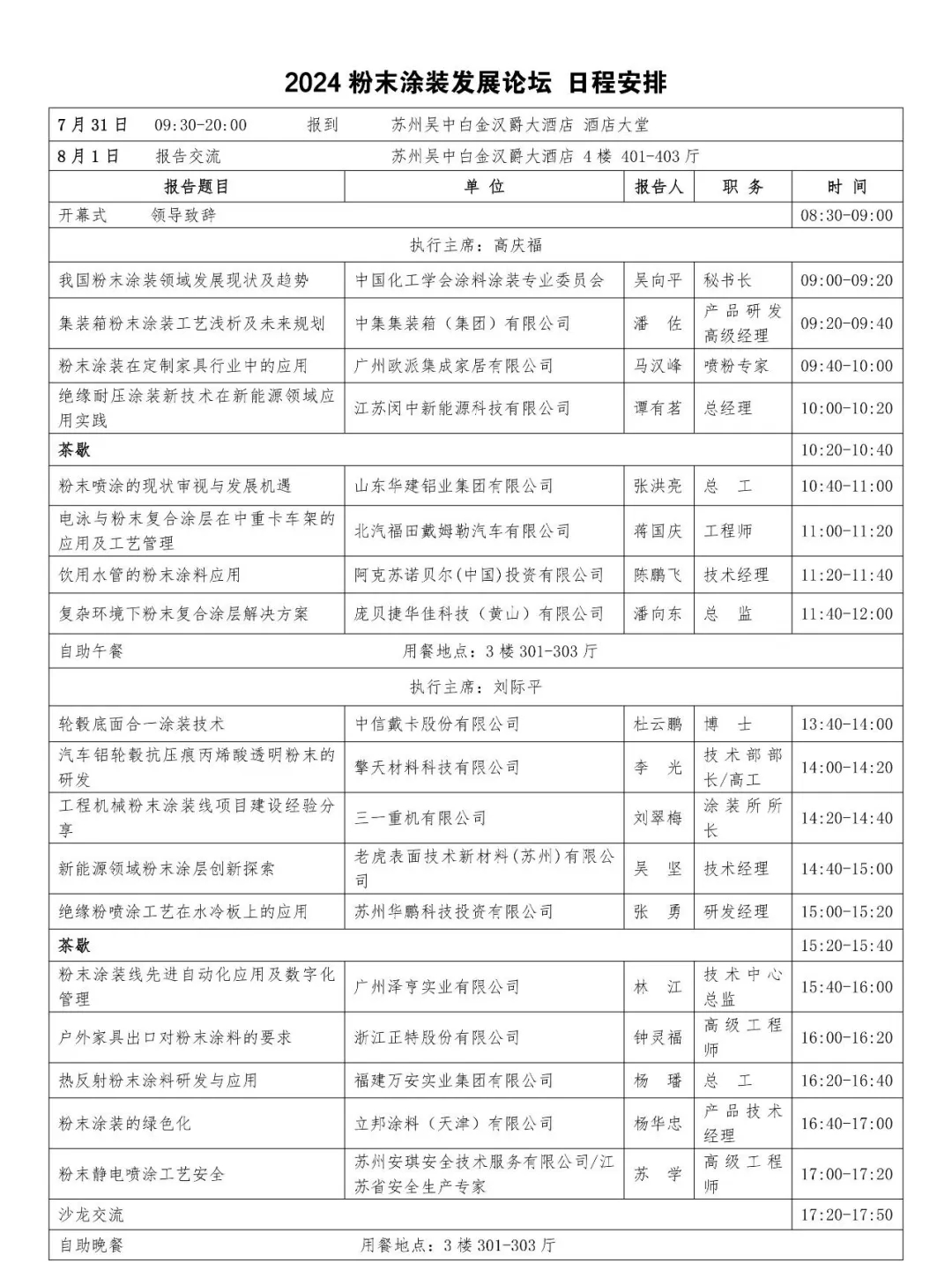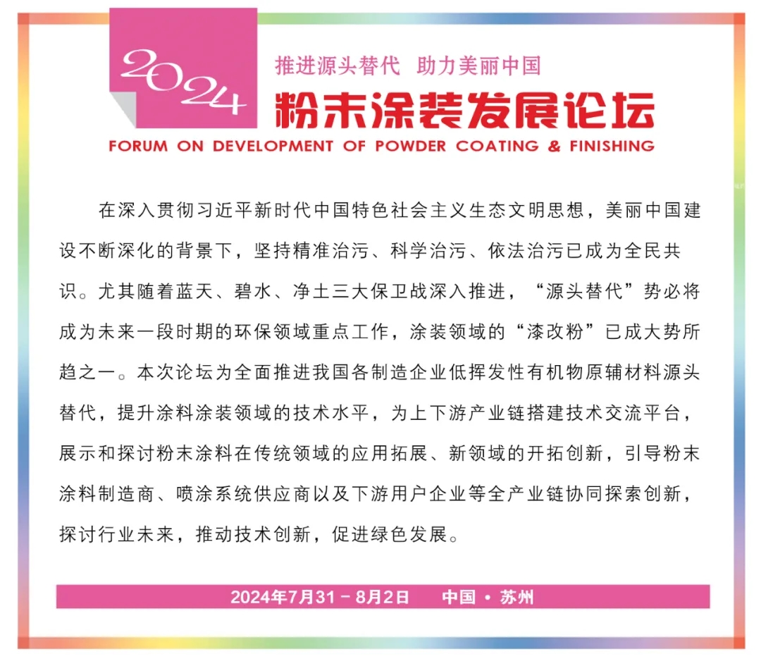 揭幕!2024粉末涂装发展论坛日程安排发布!