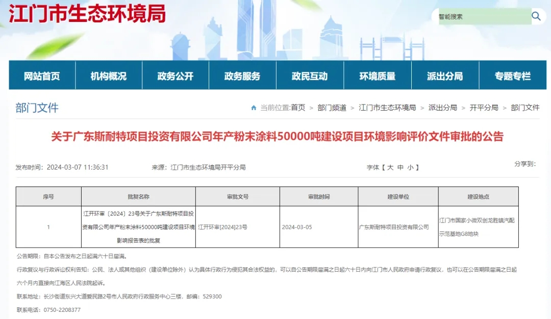 广东斯耐特项目投资有限公司建设年产伟德客户端官网50000吨项目。