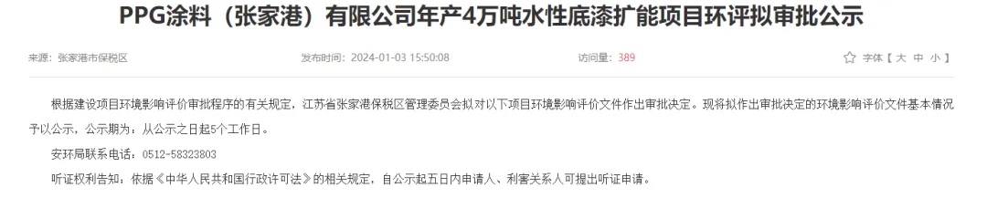 PPG涂料(张家港)有限公司拟投资410万,建设年产4万吨水性底漆扩能项目。