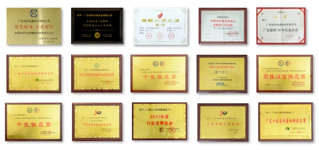 恒和永盛顺应国家政策、立足市场及客户需求不断调整生产方向,推出多系列性能优异、能满足多种应用要求的水性乳液,并凭借长久打磨的先进技术与卓越领先的乳液产品,获得了多项国家专利,荣获“涂料行业树脂乳液优质供应商”、“2022年广东省专精特新中小企业”等称号,并在不久前获批“广东省工程技术研究中心”。
