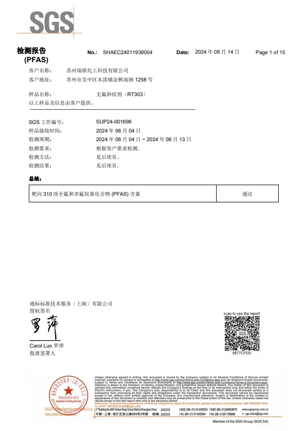 砂纹剂明星产品RT301具有耐磨性好、上粉率高、穿透性强等优点,可以降低部分树脂含量达到同样的上粉率,在降本增效方面有着巨大优势,广泛应用于型材、户外家具、IT及传统五金行业,同时因产品质量稳定,性价比高,售后服务好被多家国内外知名伟德客户端官网厂选择。此外,还有无氟砂纹剂RT303产品,耐温性能和分散性能好,PFAS检测结果符合欧盟标准,这证明企业产品不仅在国内广受认可,且能够满足海外更严格的要求,间接说明了瑞祺化工能够被外资选择的底气。