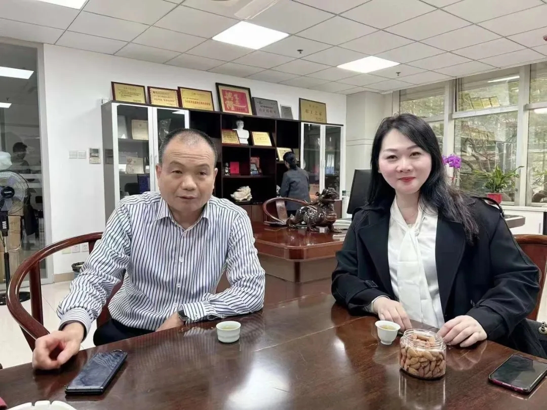涂料采购网江雪(右)到访厦门中核商贸并与孔总(左)合影