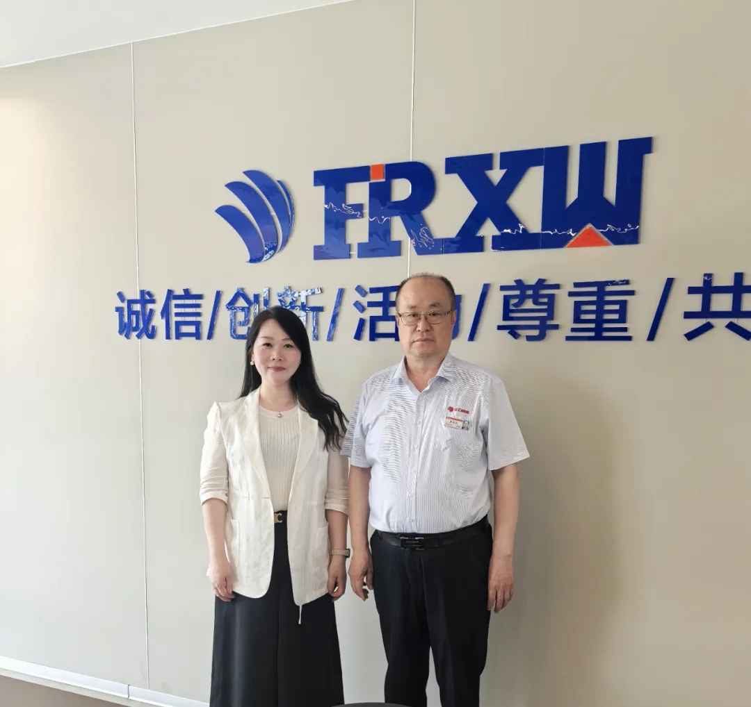 涂料采购网江雪(左)到访孚日宣威并与总经理李光俊(右)合影