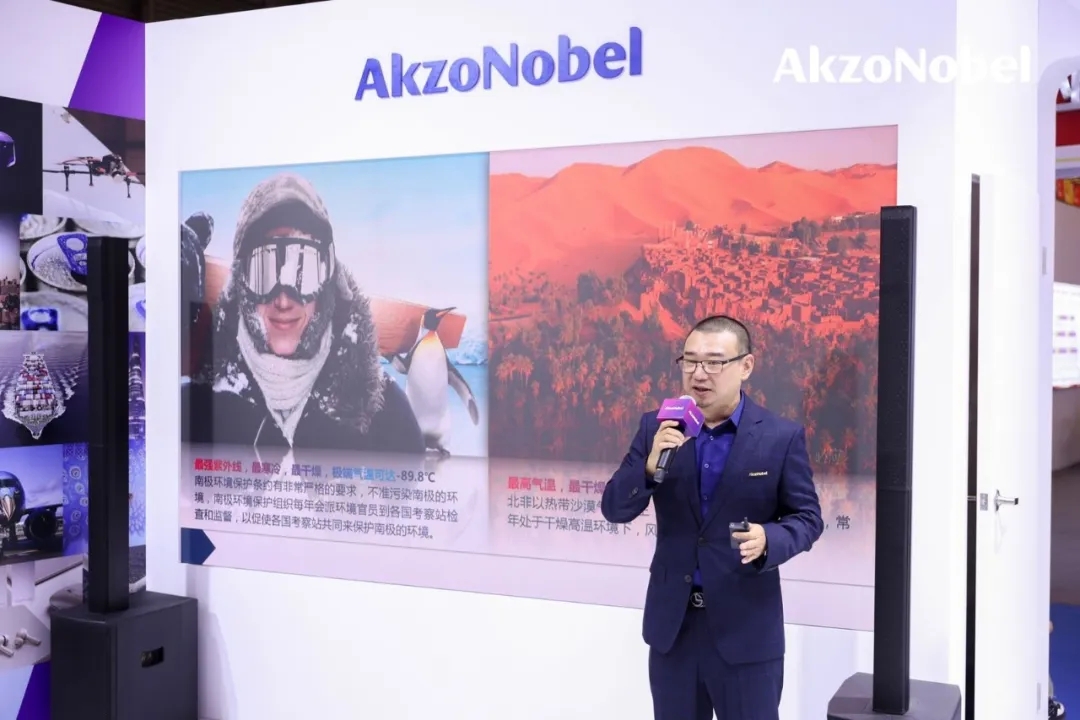 【阿克苏诺贝尔伟德客户端官网建材行业中国区总经理刘刚现场为观众介绍家装门窗伟德客户端官网解决方案】