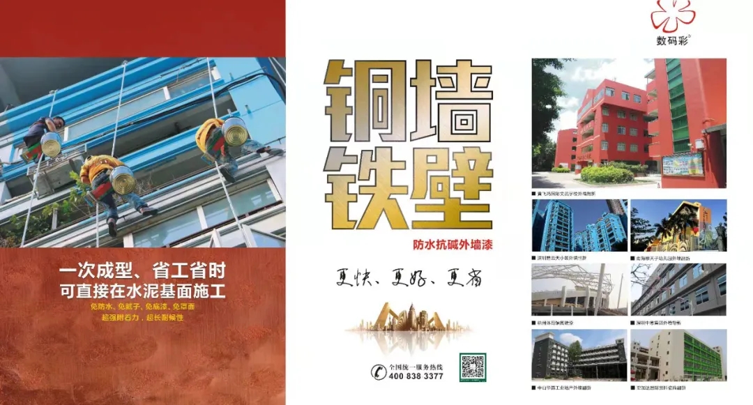 正是凭借这些卓越的品质与优势,数码彩“铜墙铁壁”外墙漆在市场中独树一帜,赢得了众多消费者与经销商的青睐与信赖。它为建筑行业带来了更加环保、高效、耐用的涂装解决方案,被誉为“翻新神器”。无论是家庭住宅的温馨空间、商业建筑的繁华景象,还是公共设施的庄重面貌,“铜墙铁壁”都以其坚实的品质为每一面墙披上了坚固的保护外衣。