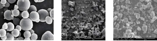 天问专利球形蜡微粉(左)其他球形蜡微粉(中)普通蜡微粉(右)