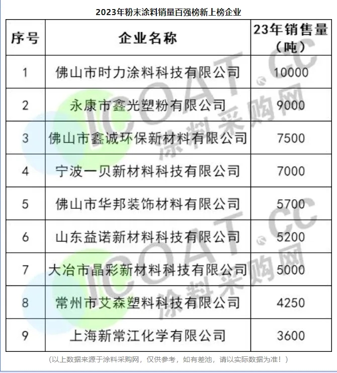 为了解2023粉末企业的经营发展情况,涂料龙头媒体涂料采购网发布了“2023年粉末销售量百强排行榜”,揭开行业龙头的发展秘籍。其中位于涂料大省广东的佛山市鑫诚环保新材料有限公司(以下称佛山鑫诚)位列新上榜企业前三强,展现出强大的发展潜力,这背后是产品和服务等多方面的突出优势。