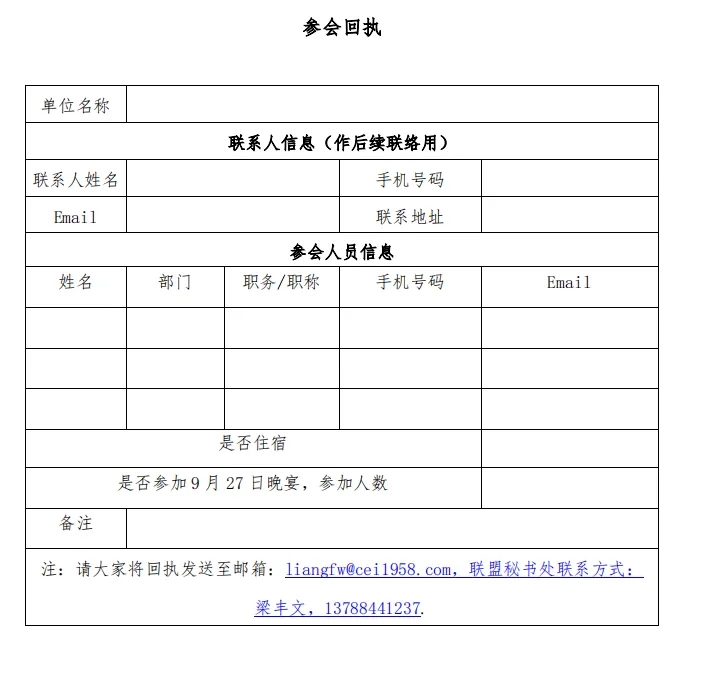 (一)参会报名:9月10日前将参会回执报送联盟秘书处完成报名;会议规模预计500人以内,名额有限,先报先得。