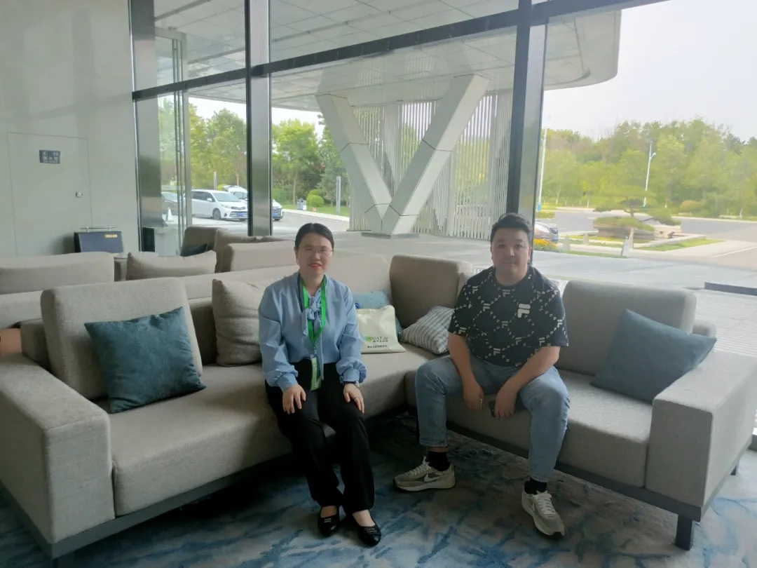 涂料采购网主编于琢(左)与儒佳科技销售负责人张杨(右)合影留念