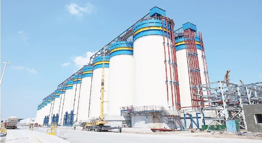 起重机挥舞着巨臂,运输车来往穿梭,施工人员紧张而有序地作业……记者在沾化区汇宏新材料有限公司年产400万吨氧化铝生产线迁建升级项目现场看到一派繁忙景象。该项目今年10月投产200万吨,2025年5月400万吨全部投产,项目投产后将建成单体规模全球最大的氧化铝生产基地。