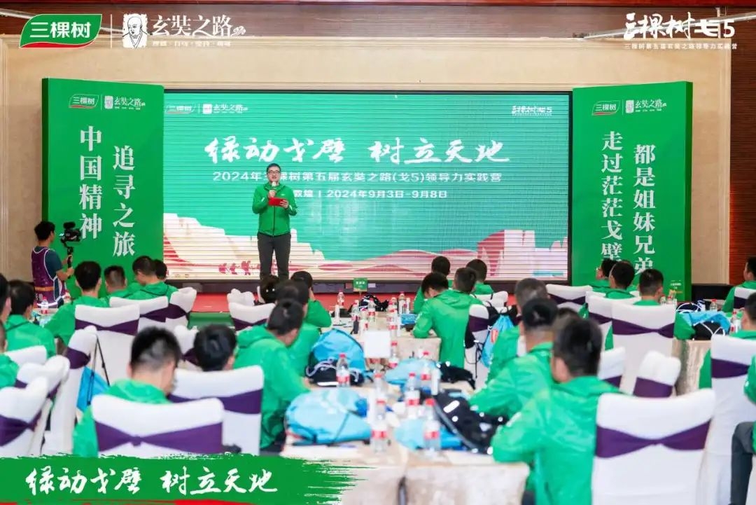三棵树副总裁、戈5领队洪圣源在致辞中指出,像树一样,永远向上,是三棵树与生俱来的品格。玄奘之路领导力实践营是践行三棵树企业文化的重要载体,此次活动是三棵树新文化、新品牌、新战略全面升级后举办的首场戈壁挑战赛,因此也被赋予了三棵树全新出发的深刻内涵,寓意着三棵树人将以崭新的面貌、全新的模式、坚定的步伐,向世界涂料领导品牌奋勇迈进。