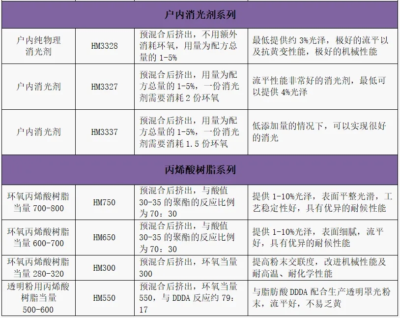 此外,消光剂产品具有流平性能优异、低烟、低光泽和适应性强等差异化优势,最低提供约3%-4%光泽,消光效果与市面上常见的消光剂拉开了明显差距;聚氨酯树脂产品具有优异的附着力、抗黄变和耐温、耐候等性能;环氧丙烯酸树脂当量700-800和环氧丙烯酸树脂当量600-700作为代表性产品,可提供1-10%光泽,表面平整细腻,工艺稳定性好,获得了上下游客户的一致好评。