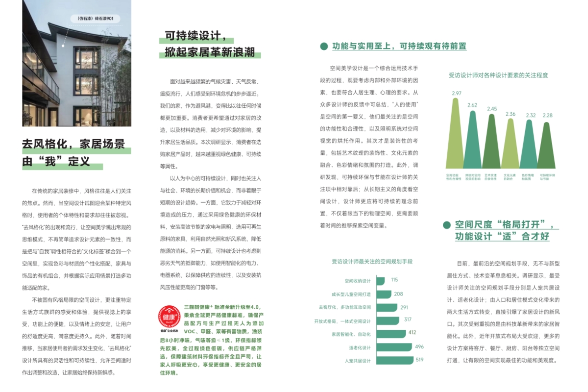 在报告发布之际,多位知名设计师也表达了对空间美学设计的见解。他们普遍认为,在多元化与个性化的消费趋势下,家居设计需更加注重功能与实用性的平衡,同时融入个性化的审美元素。