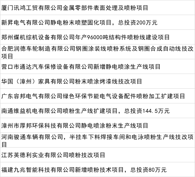 此外,还有部分企业的喷粉线等相关项目,在当地发改部门进行了备案,有望不久之后进行建设。