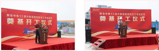 奠基仪式上,产线建设项目总包单位和监理单位的代表分别上台发言。总包单位负责人表示,此次参与全球首条集装箱喷粉专线的建设,深感荣幸,将严格遵循项目的高标准、高要求,确保施工质量和进度,助力项目如期完工并顺利投产。监理单位负责人也郑重承诺,将以专业的监理服务,确保项目安全、环保、优质进行,全力支持新会中集实现绿色智能化制造的目标。