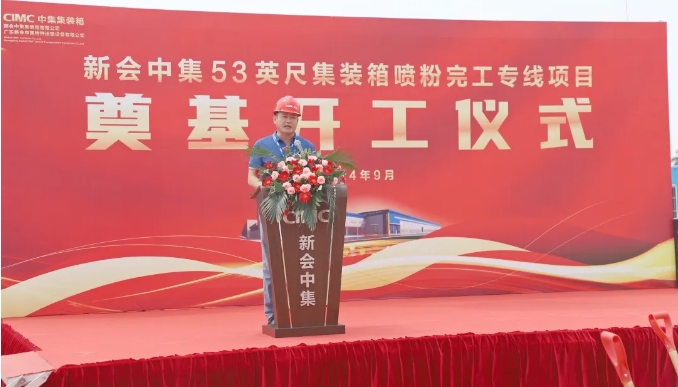 随后,新会中集总经理戴志前先生代表公司发表了讲话。戴总指出,绿色发展是企业未来的核心战略之一,而此次建设的53英尺集装箱喷粉完工专线,正是新会中集践行绿色制造承诺的重要举措。我们坚信环境保护是企业发展的永恒主题,持续在绿色化生产领域创新突破,将大规模应用集装箱整箱粉末涂装技术,并兼容多种集装箱产品生产,进一步提升了公司在绿色“智造”方面的竞争力。绿色发展的脚步不会停歇,未来新会中集还将继续践行环保责任,推动绿色“智造”。