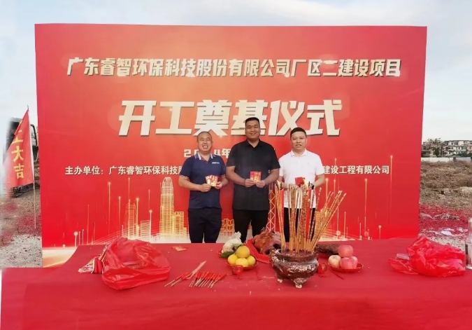 近日,广东睿智环保科技股份有限公司迎来了一个重要的里程碑——二期厂房奠基仪式!在这个意义非凡的日子里,企业董事长王文军先生与总经理杨安先生携手共襄盛举,共同见证了这一历史性的时刻。