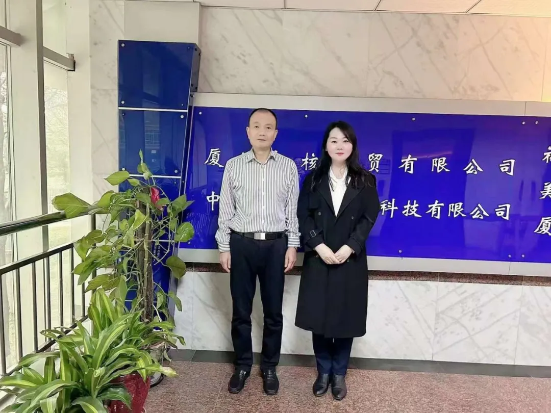 涂料采购网江雪(右)到访厦门中核商贸并与孔总(左)合影