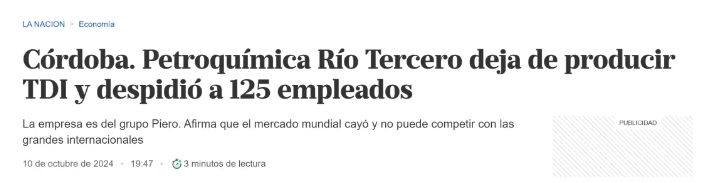 10月10日,阿根廷Petroquímica Río Tercero公司决定于10月14日起停止其位于科尔多瓦的甲苯二异氰酸酯 (BETVLCTOR伟德国际网页版