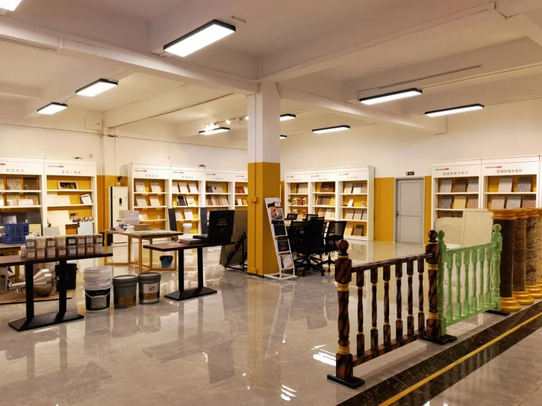 如今,数码彩正在研发真正有艺术质感的创新型新产品——干粉类艺术涂料,以前是一桶一桶卖,未来是一袋一袋卖,就像卖腻子粉一样。陈总表示:这样做的优势在于,第一,包装成本大幅降低,一个塑料桶的12元,而一个包装袋的成本只有一块多。你买到的雅晶石粉末加水搅拌后,批出来后跟买到的涂料成品一模一样,而节省出来的成本让利给消费者,花销会更少;第二,完美解决了环保问题,众所周知,艺术涂料在质检上最难通过的就是VOC检测,因为艺术涂料必要加入慢干剂,不加慢干剂是没有办法抽出纹理的,而慢干剂中有超多VOC,但干粉类产品是不需要做任何VOC检测的;第三,物流成本往往占据了商品总销售额的30%至40%,由于体积和重量的直线下降,运输成本能够降低35%左右,而且不再会担心北方冬季由于天气过冷的结冰问题,因此在全国任何地方都可以落地储存仓,也大大解决了运输损耗问题。