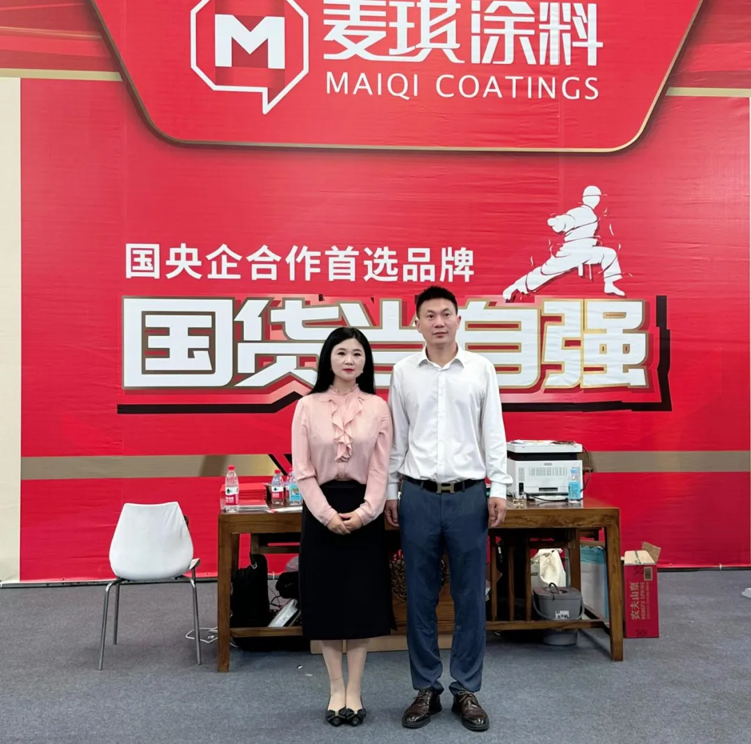 麦琪集团董事长刘国凯(右)与涂料采购网王赛(左)合影