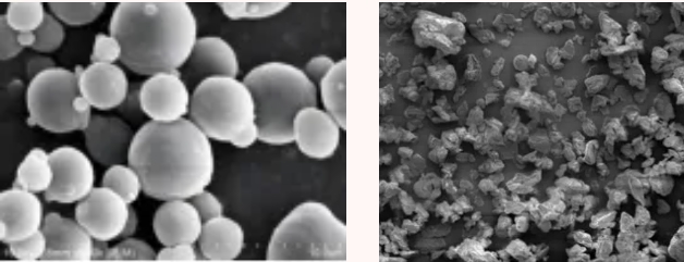 天问新材球形蜡微粉(左)与其它球形蜡微粉(右)对比图