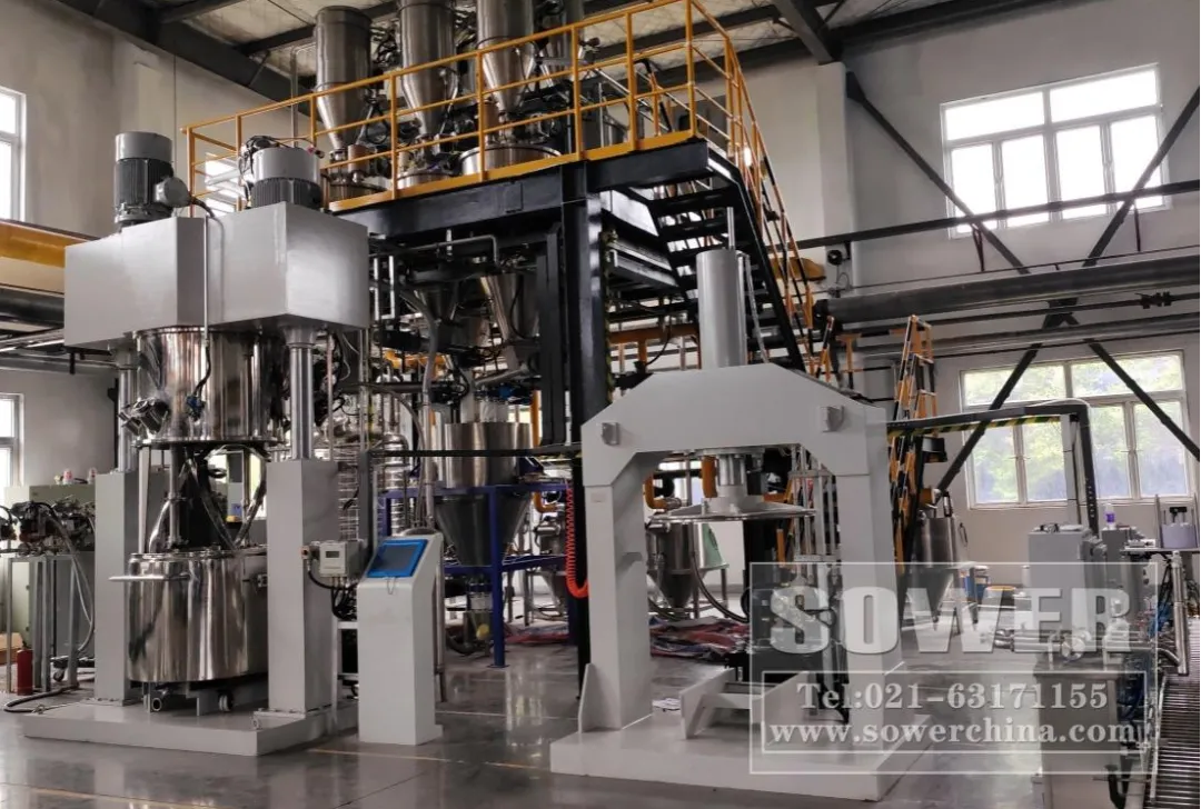 在深入交流中,谢总欣然向我们展示了壹维机电旗下几款备受市场青睐的明星产品。其中,SWXJ-1000L行星式搅拌机尤为引人注目。这款设备巧妙配置了双搅拌桨叶与刮壁桨叶,行星搅拌桨叶在绕公共轴公转的同时,还进行自转,它们沿着容器壁运行,不断将附着于壁上的物料刮下并带向中心。仅需三圈,大部分物料便能实现初步混合;而仅仅三十六圈后,所有物料便能达到完全均匀混合的状态,展现了其非凡的搅拌效率与效果。