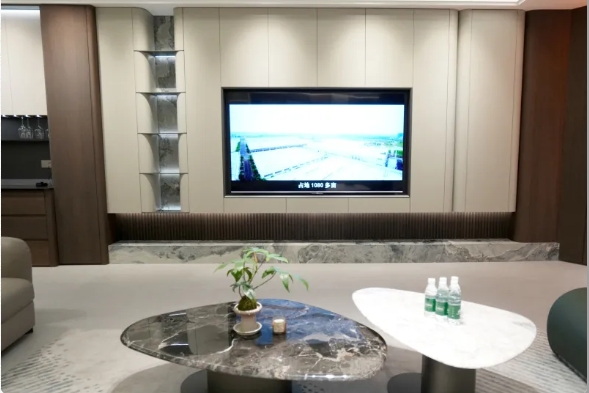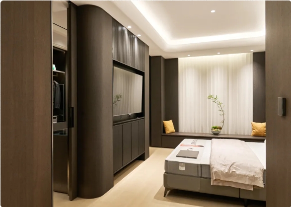 配备隐藏式冰箱、收纳篮及透光石酒柜