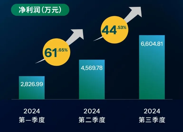据悉,2024年前三季度,麦加芯彩整体营收呈现出强劲的增长态势,净利润也实现了显著提升。数据显示,企业营收环比增长显著,展现出强劲的市场竞争力和盈利能力。分季度来看,第一季度,企业凭借稳定的客户基础和优质的产品,实现了营收的稳步增长。第二季度,随着市场需求的进一步释放,企业营收和净利润均实现了较大幅度的增长。而到了第三季度,企业业绩依旧稳步上行,营收和净利润均创下新高。