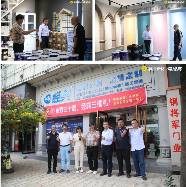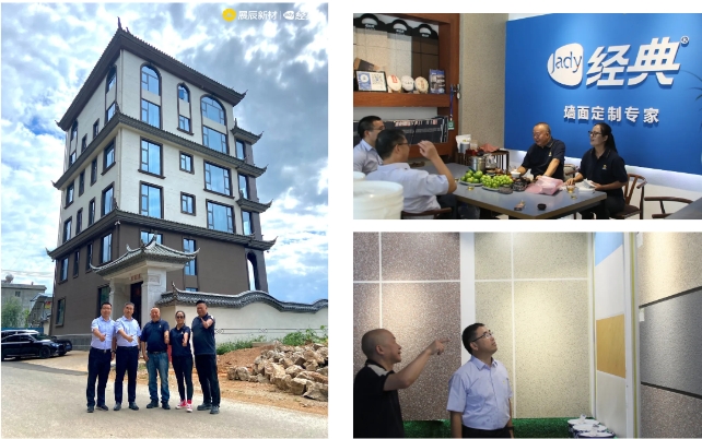 24日上午,陈董一行走访曲靖市场,参观了经典沉浸式体验涂装旗舰店,随后深入乡镇市场走访了分销渠道,与客户进行了深度交流,并考察了经典美丽乡村仿石漆项目。