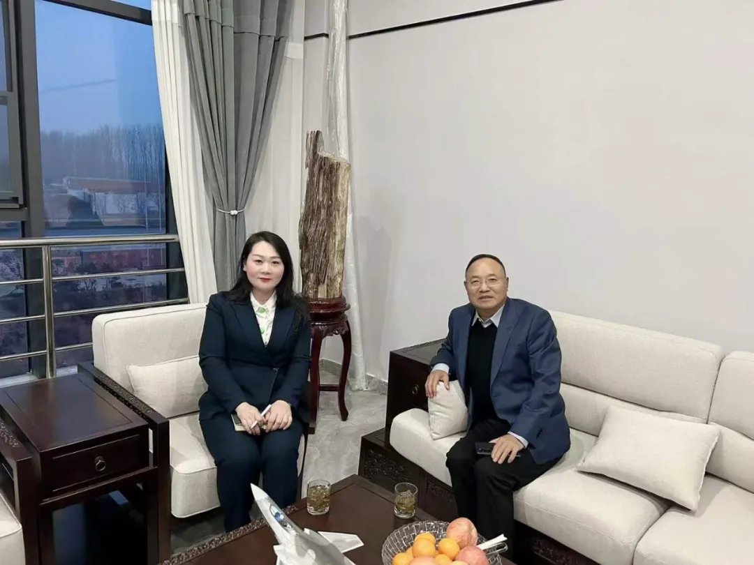 涂料采购网江雪(左)与青山环保董事长朱新峰(右)探讨水漆行情
