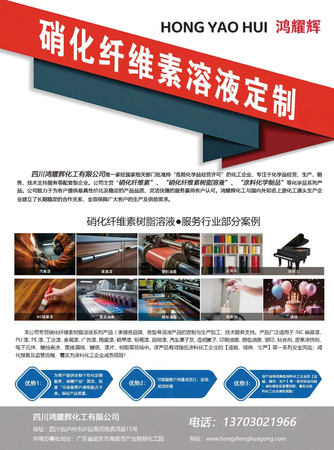 总结而言,鸿耀辉化工的硝化纤维素树脂溶液产品,以其卓越的安全性能、个性化定制服务以及强大的供应链优势,为涂料行业提供了一个全新的发展方向。在国家对化工行业安全风险管理要求日益严格的今天,鸿耀辉化工的产品不仅帮助涂料企业提高了安全管理水平,降低了运营成本,更为整个行业的可持续发展做出了积极贡献。展望未来,鸿耀辉化工将继续致力于技术创新和服务升级,为涂料化工行业的安全发展贡献力量,与行业同仁共同迎接更加安全、环保、可持续的明天。