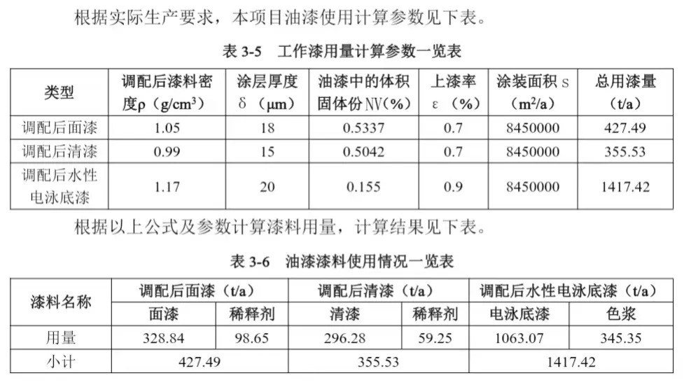 根据项目产品方案,拟建项目生产的三轮电动摩托车整车(货运)外观尺寸为2985mm*1000mm*1350mm,单台货三轮涂装面积约11㎡;三轮电动摩托车整车(蓬车)外观尺寸为2300mm*1300mm*650mm,单台蓬三轮涂装面积约 2.5㎡。