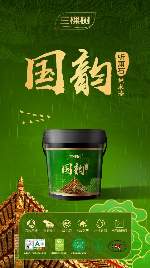 三棵树艺术涂料国色系列的霓光漫彩、光韵流莹,国韵系列的听雨石,还有清影玉肌、维也纳星光等明星产品均有参与此次焕新补贴活动。产品不仅健康环保,独特的东方传统色彩与时尚的纹理效果更是有口皆碑。这些活动产品拥有净味、防火、抗菌、防霉、耐用等不同功能,具备强大环保性和功能性基因,与传统国风韵味的文化底蕴相融合,让美学与实用达到平衡,满足对美好家居生活的无限向往。