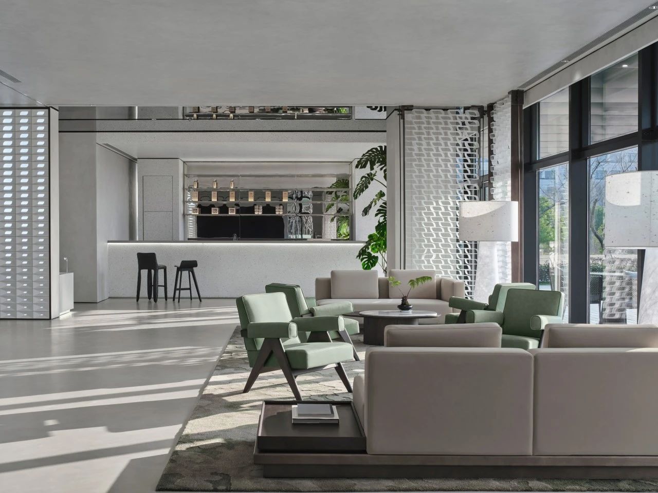 三棵树上海新材料中心坐落于长三角一体化示范区,毗邻虹桥国际交通枢纽,是品牌全球化布局的重要支点。三棵树上海新材料中心的设计突破传统企业展示空间的局限,中心首层以漆艺材料科技化呈现企业“更健康的中国漆”实力;二、三层以“融自然”理念构建开放办公空间;四、五层传承运用中国原生态、自然环保的纯天然大漆,打造全球领先的中国漆文化体验中心。