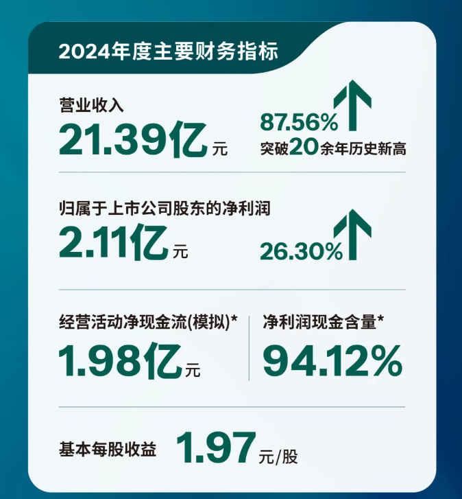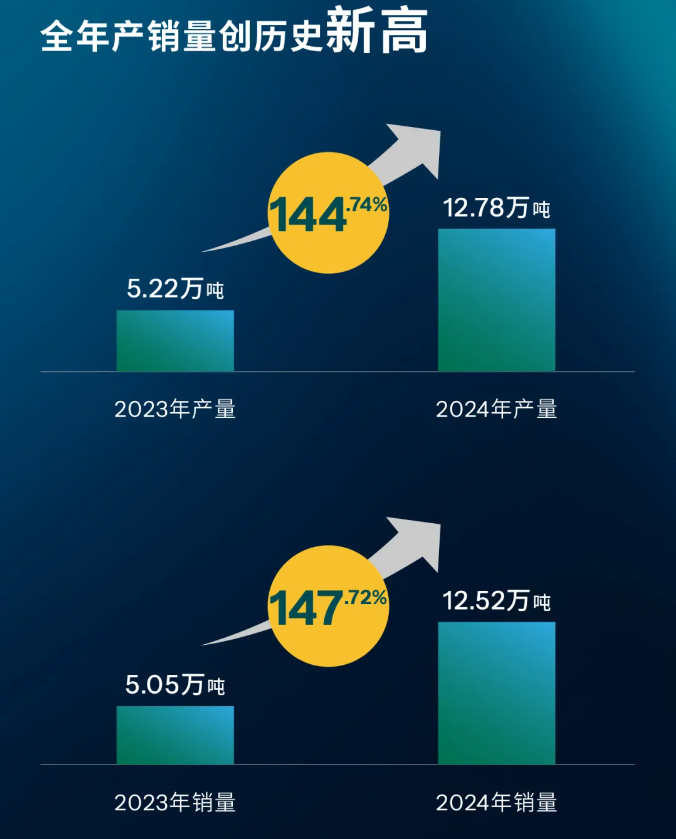 在关键财务指标上,麦加芯彩成绩斐然。全年营业收入达到21.39亿元,同比大幅增长87.56%,成功刷新了成立20多年来的历史最高纪录;归属于上市公司股东的净利润为2.11亿元,同比增长26.30%,盈利能力稳步增强;产量和销量分别提升至12.78万吨与12.52万吨,较2023年分别增长144.74%和147.72%,产量、销量、营收三大核心指标均创历史新高。这些亮眼的数据不仅彰显了麦加芯彩过去一年的辉煌成就,也预示着其在未来市场竞争中充满无限潜力,有望持续引领行业发展潮流,为行业的发展树立新的标杆。